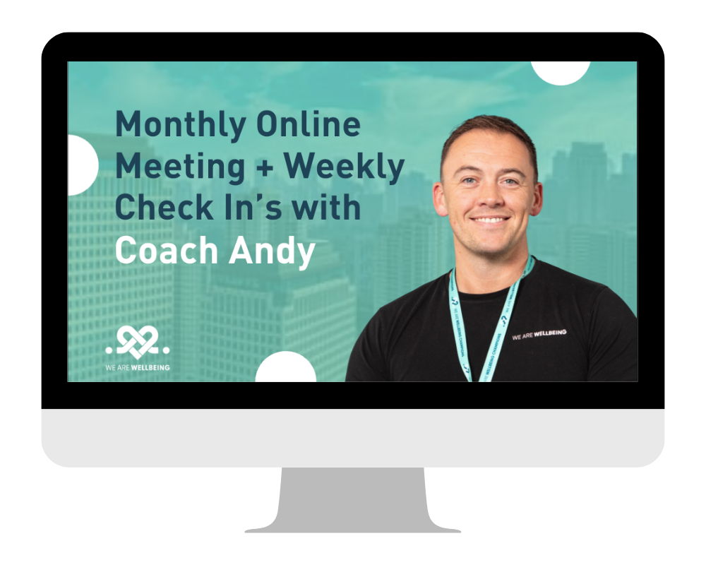 Monthly 60 minute meeting to update progress, modify goals and stay on track. Weekly message check-in’s to stay focussed.